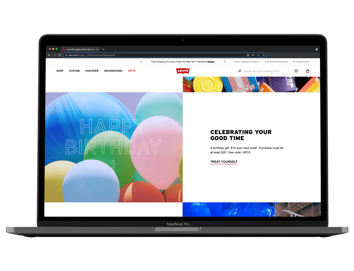 The Red Tab™ Program is a free loyalty program for Levi’s® customers. By joining customers unlock immediate access to free shipping, exclusive product drops, birthday rewards, and more.