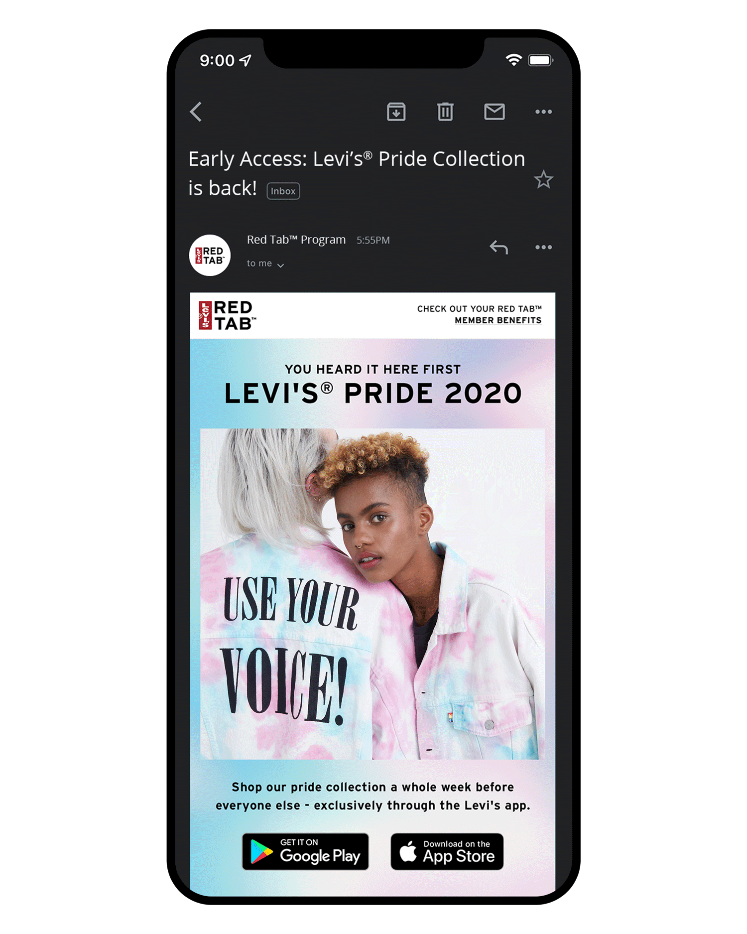 Each month the Red Tab™ Program delivered at least 3 benefits. I was the main visual designer responsible for communicating the new perks in an exciting and understandable way. Below are a couple examples of how these benefits were delivered to customers via email, the Levi’s® App, and the Levi’s® website.